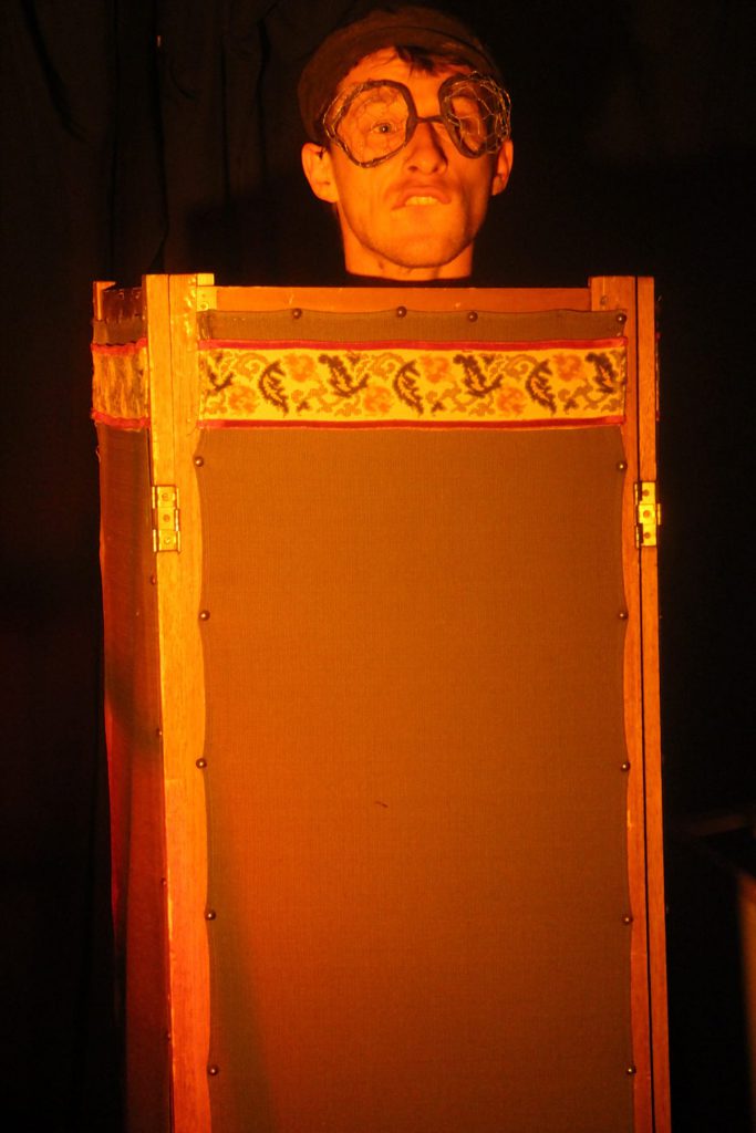 Mâchant ses mots qui passent de travers, il découvre dans sa maison d’étonnants protagonistes qui n’ont de cesse d’animer l’espace de manière incongrue. Dessus, dessous, et même dans les recoins d’un paravents, tous les lieux deviennent prétexte à l’espièglerie.