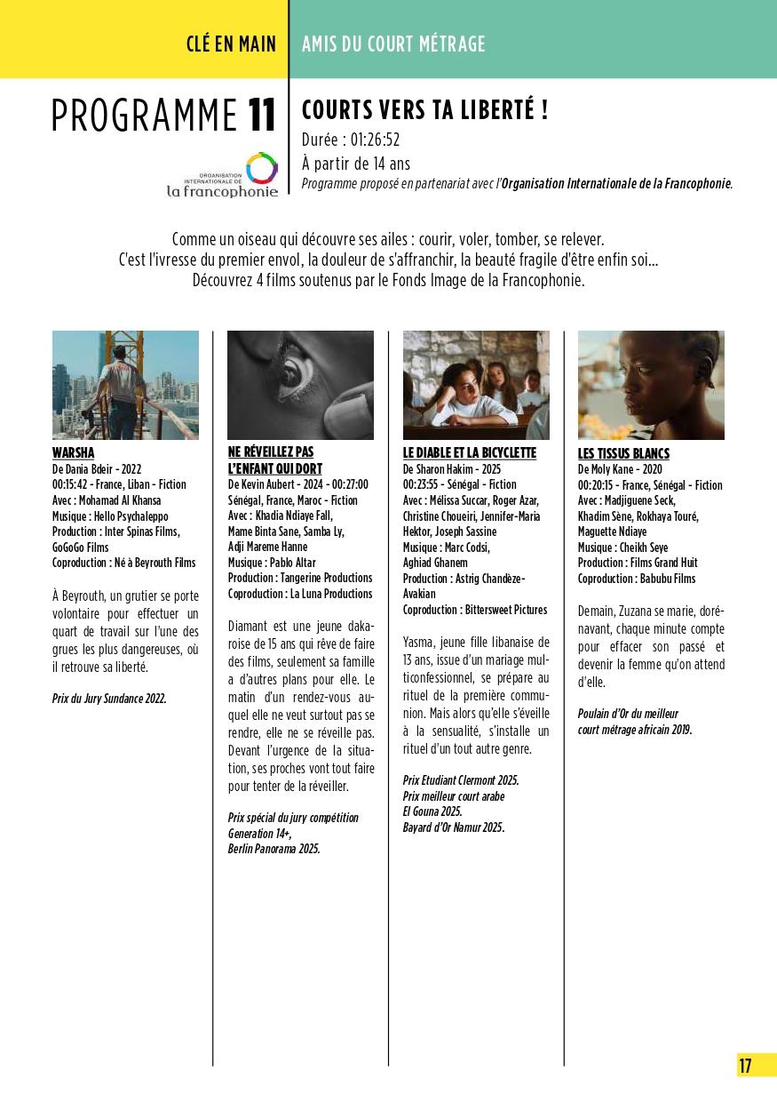 fête du court métrage [ciné] 28 mars 2026 Julien GeffroyConcerts & spectacles Pas de commentaire samedi 28 mars | 11h00 Concerts & spectacles Gratuit Projection dans le cadre de la fête du Court Métrage: au programme ce matin: « Courts vers ta liberté » + une sélection de très court métrage