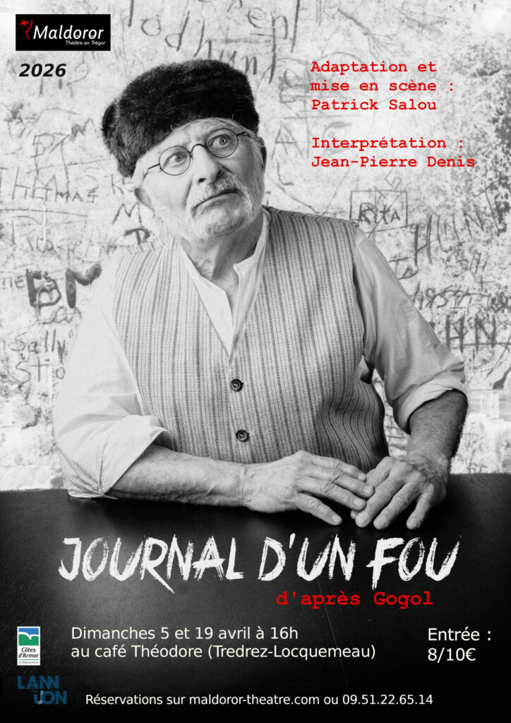 Seul en scène, l’acteur avance au plus près du public, comme si tout se jouait ici et maintenant, sans distance. La langue de Gogol est mise en avant : précise, drôle, coupante, et capable en une phrase de basculer. Le spectacle travaille le va-et-vient entre le comique et le tragique, sans souligner, sans expliquer. On suit la folie à la surface des mots, sans psychologisme, par le rythme, les ruptures, les obsessions. Comme une lecture à voix haute d’un journal intime, la parole se fissure progressivement, et l’on entend l’écroulement. Le rire ouvre la porte, puis quelque chose se referme, et l’on se retrouve pris dans une logique qui n’appartient qu’à lui.