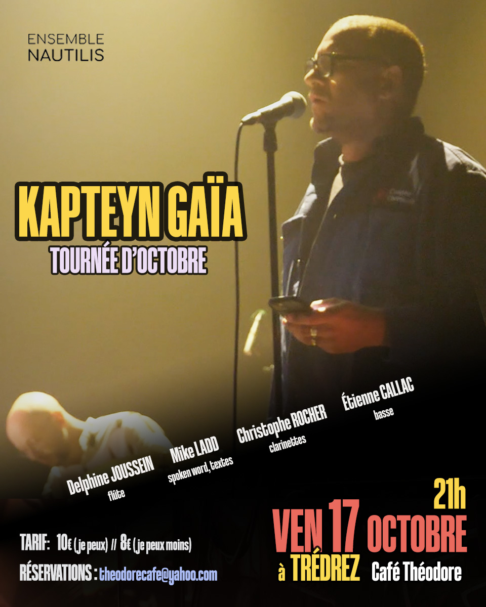Le clarinettiste Christophe Rocher invite le rappeur américain Mike Ladd , la flûtiste Delphine Joussein et le bassiste Etienne Callac au sein d’une aventure sonore post-humaniste, un vaisseau poétique et musical.