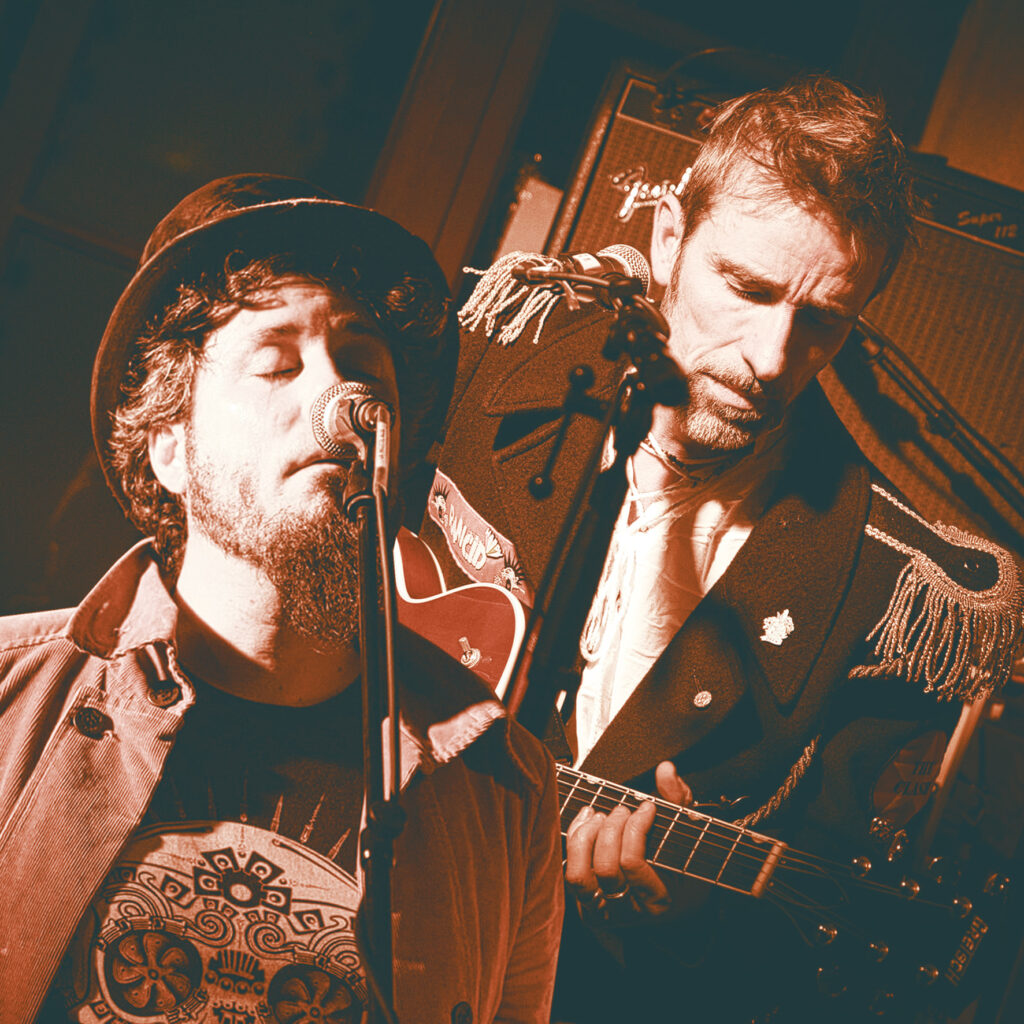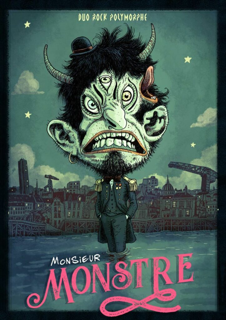 Monsieur Monstre, un duo nantais à l’énergie brute et l’univers singulier. Entre rock, blues, manouche et sons bricolés, Fréddo Bellayer et Lucas Vallerie proposent un spectacle musical aussi déjanté qu’habité. Accordéon, guitares, loopers, percussions et voix caméléon composent une musique de rade poisseux et de cabaret fiévreux, à mi-chemin entre Tom Waits, Gogol Bordello et Danny Elfman.