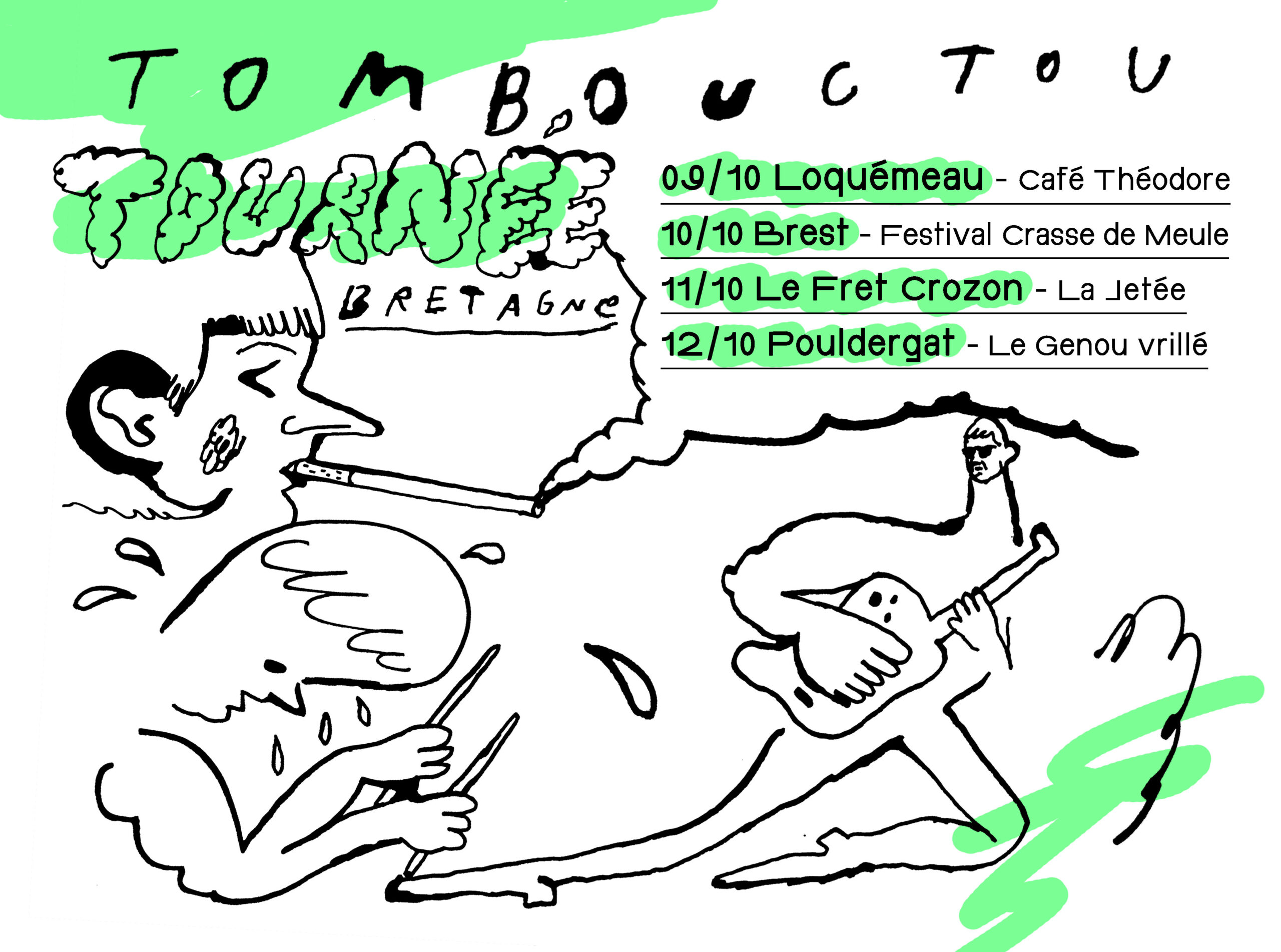 Voici venu Tombouct0u, trio musicalement non genré, piloté par un chant erratique adossé à un tandem instrumental tendrement éruptif. Chez Tombouctou, on transgresse les lignes stylistiques, tord les mélodies et concasse les structures des chansons en dansant sur les scories fumantes d’un rock pulvérisé, saluant au passage l’héritage des aîné.e.s, de Siouxsie à Blonde Redhead.